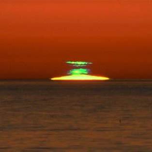 太陽が水平線に沈む時や上る時、一瞬グリーンに光って見える時がある現象です。