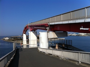 また、港の近くには日本一高い歩道橋と言われている中之島大橋があります。