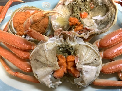 オスよりも小ぶりながら、この内子の濃厚な旨みは別格で、カニ味噌と一緒に甲羅から取り出すと、もう美味しくて幸せな気持ちで一杯になります。