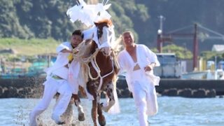 千葉県富津市にある吾妻神社では、毎年「馬出し祭り」が行われています。五穀豊穣や海の安全、大漁を祈願して行われるもので、吾妻神社から神馬を海岸まで連れて行き、若者が馬と一緒に海に入るお祭りで、この地方では有名なお祭りです。発祥の言われは、「日...